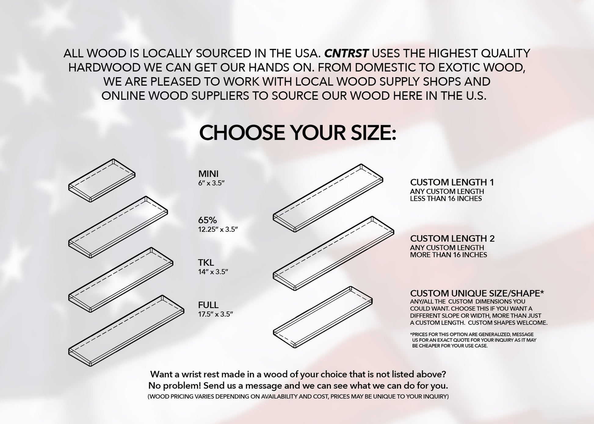 Thanks for checking out our handmade keyboard wrist rests. All of our wrist rests are handmade/handcrafted in the U.S.